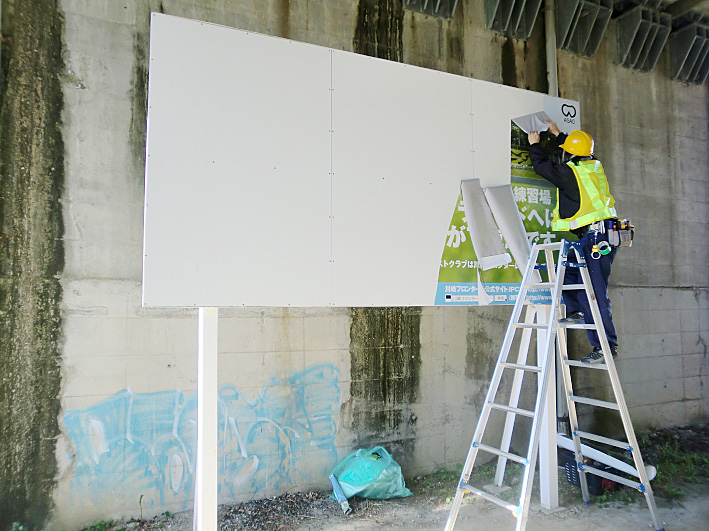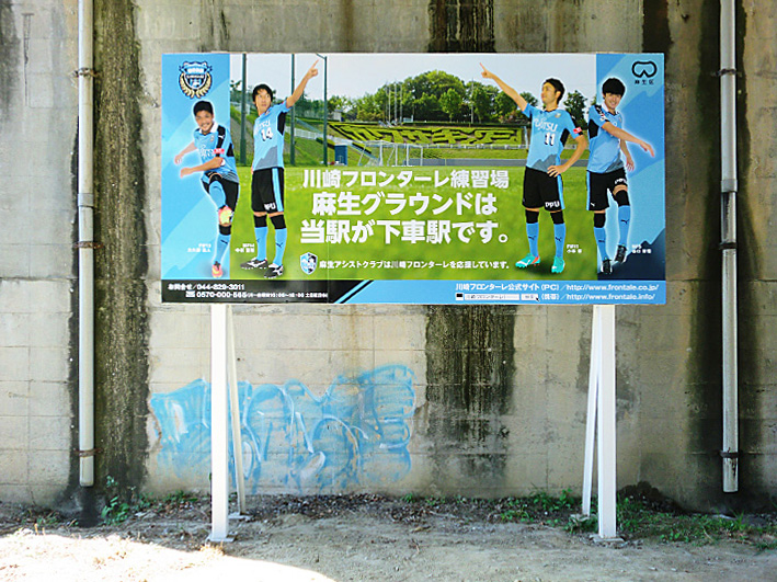 先週末は川崎フロンターレ様のホーム開幕戦でした。その試合に間に合うように小田急線栗平駅掲示板のデザインから貼替作業までをしてきました。