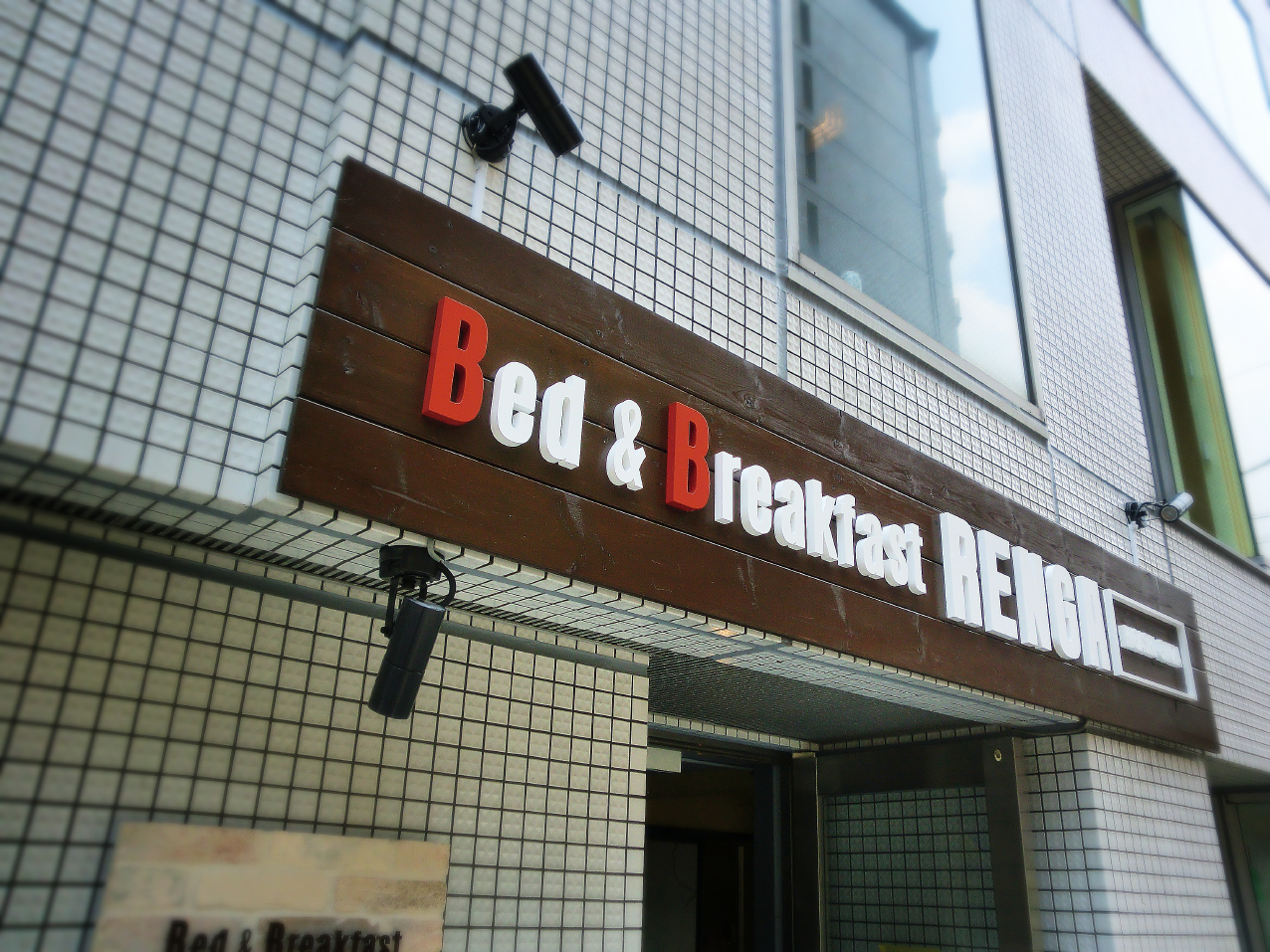 ファサードサインもコンセプトを統一したウッド製サインに。