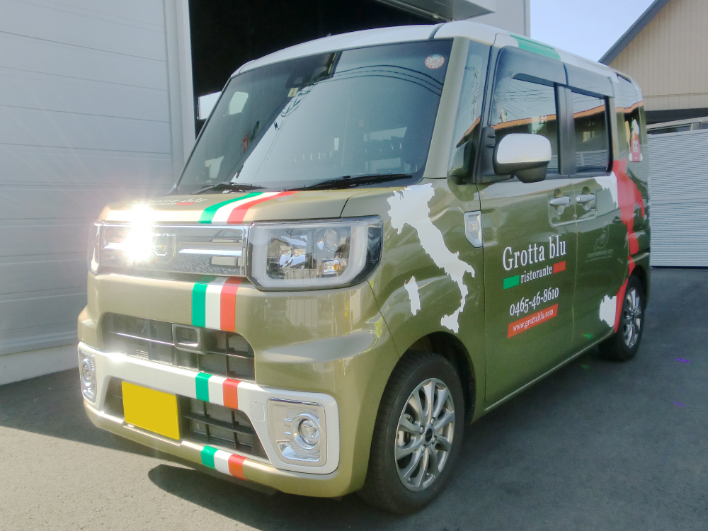 この度は出力施工でお世話になっている会社様からデザインの依頼をされた「Grotta blu」(グロッタ・ブル)というリストランテの営業車です。お店は3月オープン予定とのことで、その前に少しでも宣伝になれば良いと思います。