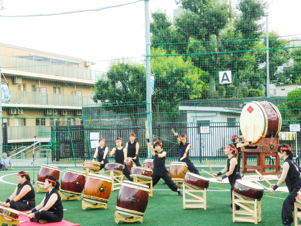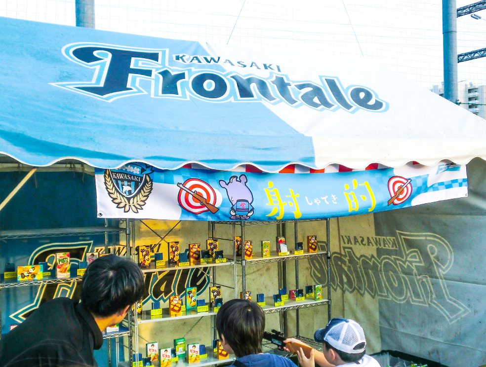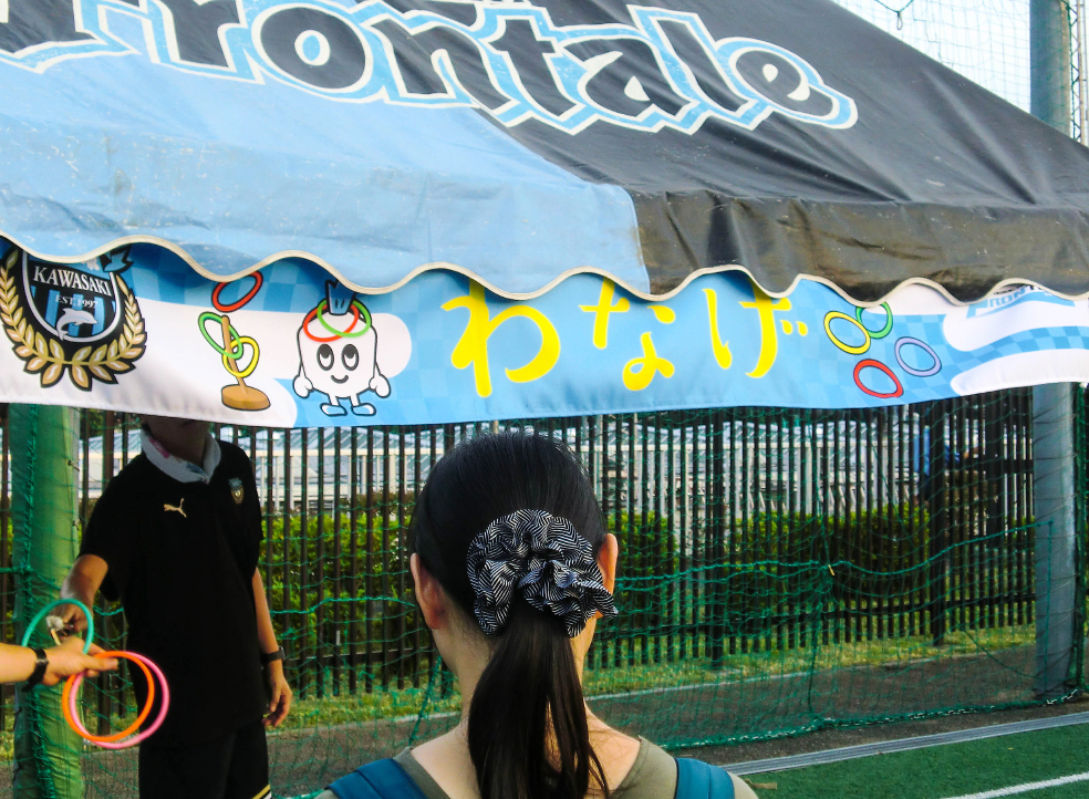 豪華PUMA商品が当たるスーパーガラポンや川崎新田ジムのミット打ち体験、和太鼓演奏・体験会から、フロンタふわふわ、ヨーヨー釣り、射的、輪投げ、スーパーボールすくい等のアトラクションやヤキソバ、かき氷、枝豆&ビール等の屋台にと大盛り上がり! 日も暮れて提灯に明かりが灯り始めると祭りも大詰め。時間が無くて見れませんでしたが締めはやっぱり盆踊り!! たくさんの市民が来ていただけたようです。