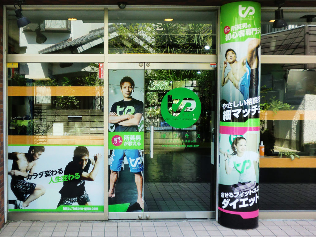 昨日、総合格闘家「所英男」さんが経営する格闘技&フィットネスジム「所プラス」様のガラス面を装飾させていただきました。
