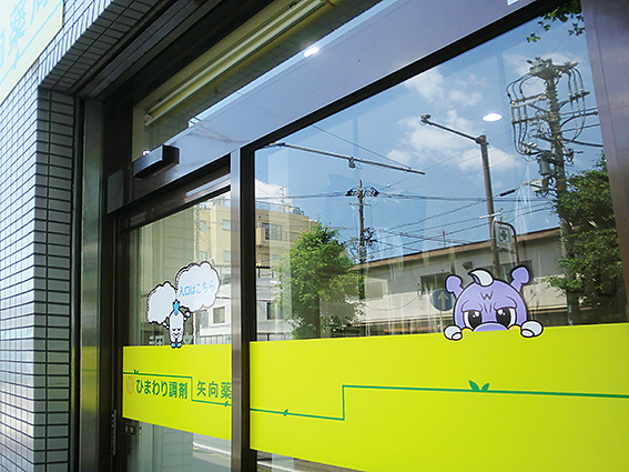 沖縄〜東海地方では平年より早い梅雨入りが発表されましたが、関東は6月に入っても未だ大丈夫なようですね。屋外で作業する装飾施工には予定が立てやすいので助かります。そんな全く雨の心配もない良い天気に恵まれた6月1日に「ひまわり調剤 矢向薬局」様の屋外装飾が無事に施工されました。