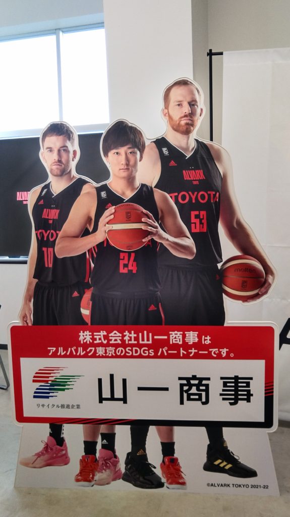 毎年アルバルク東京様からメンバーズカードやフライヤー各種のデザイン依頼をいただいてますが、今年はそれに加えて新たにアリーナを装飾する等身大パネルも製作させていただきました。