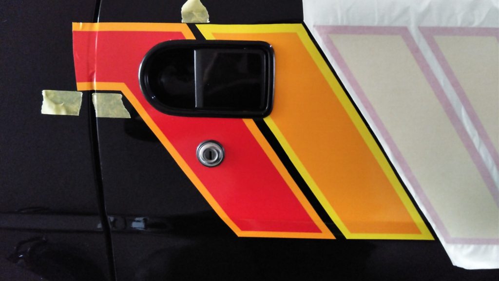 こうなると旧車のイベントやミーティングにも参加したくなり、そこで出会った方とも仲良くなれたりと新しい人脈が広がるんですね。無事に年も明けて、その中の一人から5月15日に3年ぶりに開催される「MOONEYES主催 Street Car Nationals」に誘われたので、このまま前オーナー色のままではお披露目できない! と急遽いじり始めました。まずは仕事柄お得意のボディマーキング。シティターボⅠのオリジナルマーキングのオマージュ的にデザインしました。その色に合わせてホイールもENKEIのネオクラシックメッシュに変更。