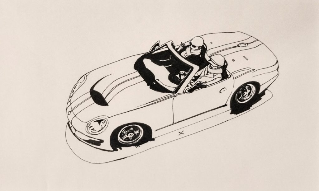 ファッション誌で連載されていた経緯もありハイセンスな構図やPOPなテイストのイラストも魅力的でした。よく見ると意外とクルマやバイクも好きなのかな?? と思えるくらいマニアックな車種が描かれていたので、あえてピックアップしてみます。